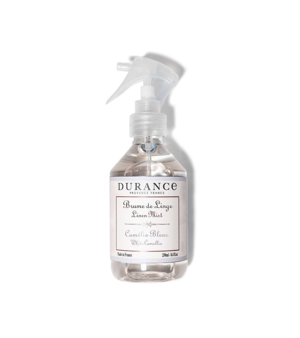 La brume de linge Camélia Blanc parfume intensément et immédiatement vos pièces textiles tout en respectant les tissus.