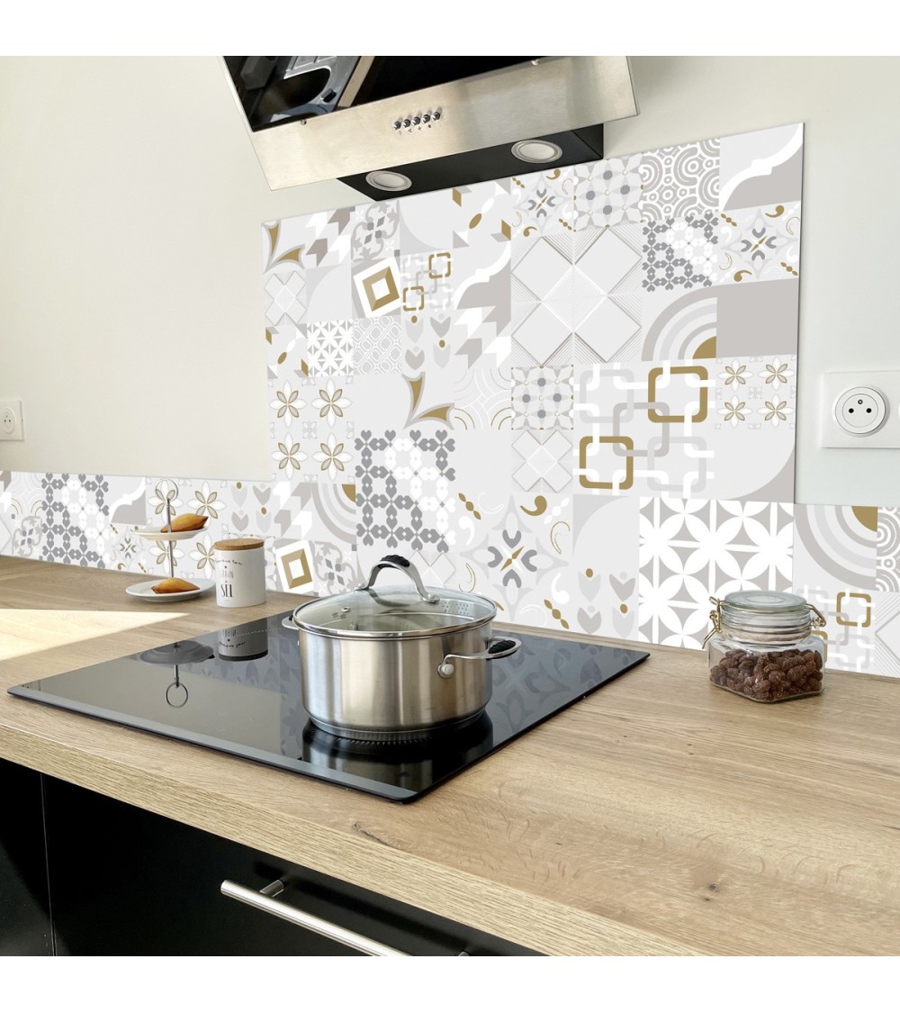 Crédence de cuisine en aluminium composite 3mm d'épaisseur, fabriquée en France. Se décline en fond de hotte ou bandeau pour s'adapter à votre cuisine. Compatible avec toute plaque de cuisson (gaz, induction ou vitrocéramique). Prête à poser grâce à ses bandes adhésives double-face de marque TESA apposées au dos. Pose facile sur tout support : placo-plâtre, peinture, toile de verre, ou même ancien carrelage dépoussiéré et propre. Découpe aisée avec : Scie circulaire, Scie à métaux, Scie cloche... équipée d'une lame à denture fine.