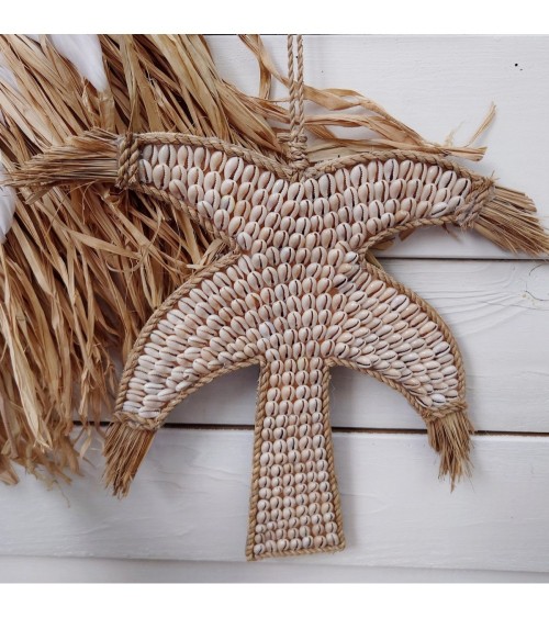 Décoration murale en raphia et coquillages H36 cm x L26 cm