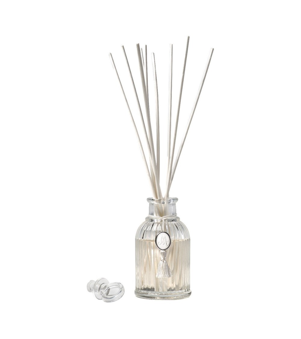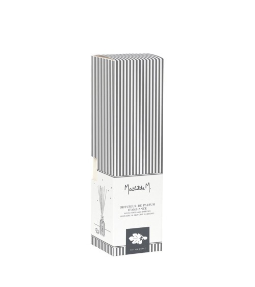 Objet de décoration raffiné, ce diffuseur de parfum d'ambiance Mathilde M. parfume en continu votre intérieur avec Figuier Dolce, une senteur douce et suave dont le parfum délicieusement lacté et vert de la figue s'entremêle à celle de la bergamote et de l'enveloppant santal. Délicatement disposées dans le flacon, les tiges en rotin naturel s'imprègnent de parfum par capillarité, le libérant ensuite pendant plusieurs semaines. Le bouchon en verre permet de refermer le flacon pour stopper la diffusion à tout moment, si vous devez vous absenter par exemple.Ce coffret contient :Un diffuseur de parfum d'ambiance Les Intemporels parfum 90 ml Figuier Dolce9 tiges en rotin de 25 cmNos conseils d'utilisationDisposez directement les tiges dans le diffuseur afin qu'elles s'imprègnent du parfum d'ambiance. Renouvelez la recharge ou changez de senteur au gré de vos envies pour prolonger à l'infini la durée de vie du diffuseur.Vous pouvez varier l'intensité du parfum en ajoutant/retirant des tiges ou en les retournant.La durée de votre diffuseur de parfum dépend de la fréquence à laquelle vous retournez les tiges, de la température de votre pièce et également de la saison.Informations complémentairesDiffuseur : ? 5,4 x 9,7 cmBoîte : 7,7 x 27,5 x 7,7 cm - Matière : Verre - Senteur : Figuier Dolce