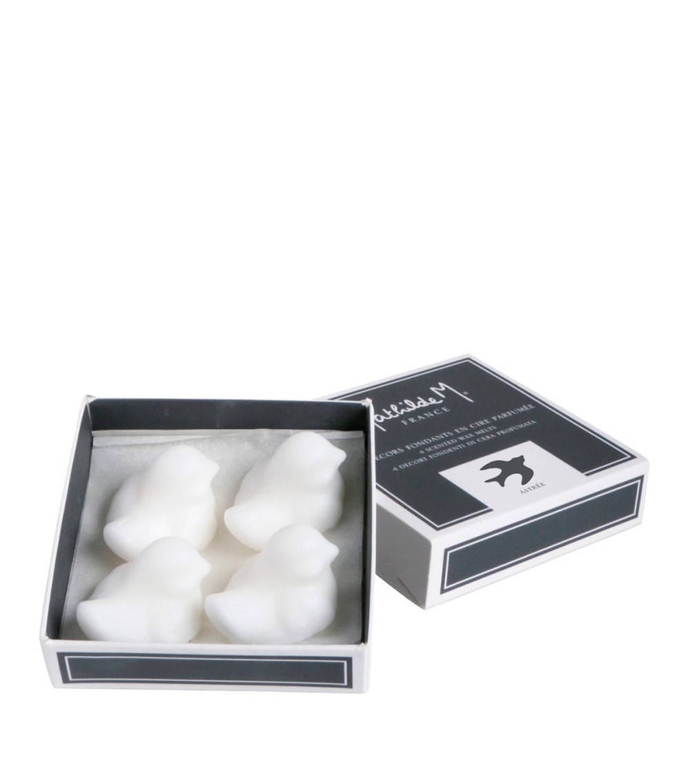 Découvrez un moyen incomparable de parfumer rapidement et efficacement votre intérieur avec Astrée, une senteur rayonnante qui signe la rencontre d'une fleur d'oranger solaire et d'un jasmin voluptueux, réhaussés d'un chaleureux accord oriental. Déposez un ou plusieurs décors fondants en cire parfumée dans votre brûle-parfum. En fondant, la cire diffuse rapidement une senteur intense grâce à sa formulation très concentrée. Chaque décor fondant vous offre jusqu'à 4 heures de diffusion. Lorsque le décor ne diffuse plus de parfum, il suffit de le changer.Vous pouvez mélanger les décors fondants entre eux pour créer un parfum qui vous ressemble.Nos conseils d'utilisation Afin d'obtenir une qualité de parfum optimale, nous vous préconisons d'utiliser les décors fondants en cire parfumée Mathilde M. dans les brûle-parfums Mathilde M.Précautions d'emploi Tenir à l'écart de toute source de chaleur (température ambiance 35°C. maximum). Tenir hors de portée des enfants. - Matière : Cire - Senteur : Astrée