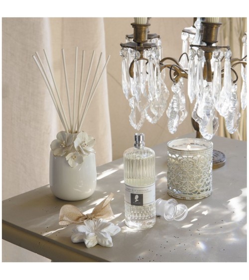 Laissez-vous charmer par notre diffuseur en céramique Amour de fleurs et ses détails raffinés dorés à la main. Il apportera une touche d'élégance et de féminité à votre intérieur, avec son déliceux parfum.Ce coffret contient :- Un diffuseur de parfum en céramique- Une recharge pour diffuseur de parfum d'ambiance 200 ml- 9 tiges en rotin 25 cmNos conseils d'utilisationDisposez directement les tiges dans le diffuseur afin qu'elles s'imprègnent du parfum d'ambiance. Renouvelez la recharge ou changez de senteur au gré de vos envies pour prolonger à l'infini la durée de vie du diffuseur.Vous pouvez varier l'intensité du parfum en ajoutant/retirant des tiges ou en les retournant.La durée de votre diffuseur de parfum dépend de la fréquence à laquelle vous retournez les tiges, de la température de votre pièce et également de la saison.Informations complémentaires :Dimensions diffuseur : Ø 8,5 x 11,5 cmDimensions pack : 11 x 26 x 15 cm