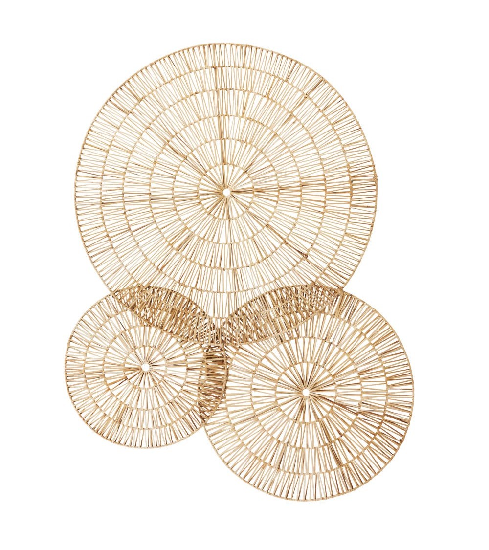Déco murale cercles en rotin tressé beige 129x98