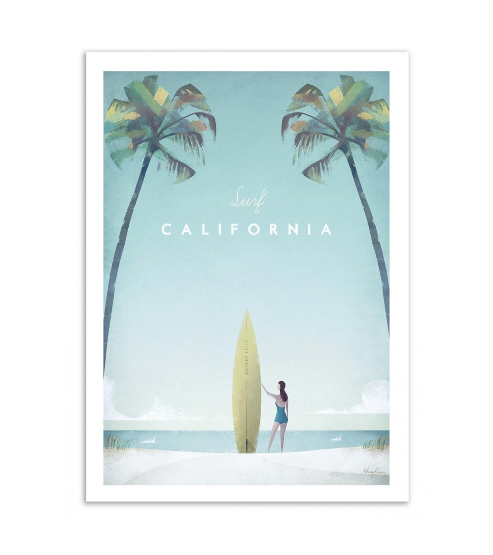 LES AFFICHES : Nos affiches sont imprimées en France, ou Union Européenne.Papier issu de forêts certifiées FSC.Affiche imprimée sur papier couché mat 250g, Haute Définition.Pour les formats d'affiches 30x40 cm : contient des marges blanches de 1,5 cm.Pour les formats d'affiches 50x70 cm : contient des marges blanches de 2 cm.OPTION CADRES : Nos cadres en bois sont fabriqués en France.Comprend une vitre en verre acrylique.Dimensions des cadres en bois 30x40 cm : Epaisseur du cadre : 15 mm, Profondeur du cadre : 20 mmDimensions des cadres en bois 50x70 cm : Epaisseur du cadre : 15 mm. Profondeur du cadre : 20 mm. Henry Rivers n'a de cesse de nous faire voyager à travers ses douces et élégantes illustrations des plus incroyables destinations figurant sur nos bucket list. Cette affiche au design rempli d'énergie rend hommage à l'un des états les plus fascinants des États-Unis : la Californie. Berceau entre autres du cinéma, du new age et des nouvelles technologies, la côte ouest vibre d'un esprit innovateur et libre.