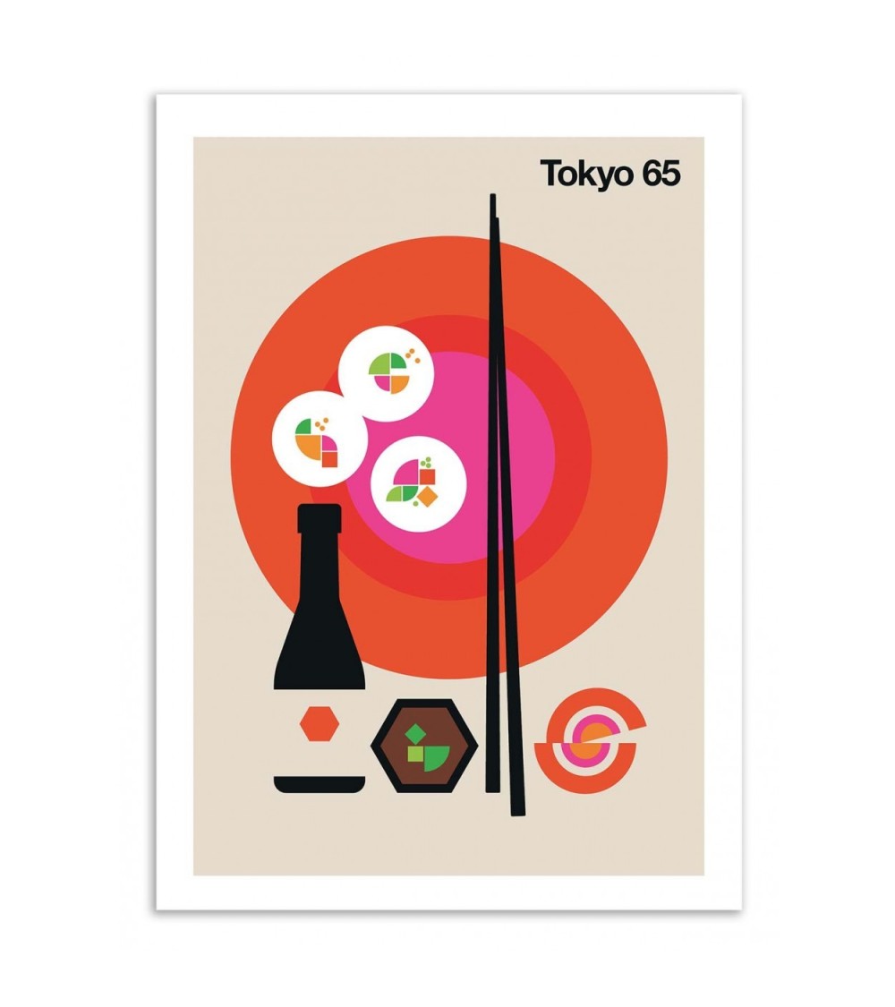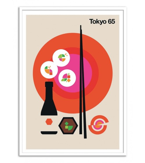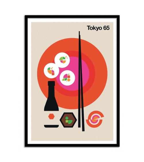 LES AFFICHES : Nos affiches sont imprimées en France, ou Union Européenne.Papier issu de forêts certifiées FSC.Affiche imprimée sur papier couché mat 250g, Haute Définition.Pour les formats d'affiches 30x40 cm : contient des marges blanches de 1,5 cm.Pour les formats d'affiches 50x70 cm : contient des marges blanches de 2 cm.OPTION CADRES : Nos cadres en bois sont fabriqués en France.Comprend une vitre en verre acrylique.Dimensions des cadres en bois 30x40 cm : Epaisseur du cadre : 15 mm, Profondeur du cadre : 20 mmDimensions des cadres en bois 50x70 cm : Epaisseur du cadre : 15 mm. Profondeur du cadre : 20 mm. L'artiste Bo Lundberg nous fait voyager à travers ses illustrations rétro des plus belles villes du monde. Regardons cette affiche murale et partons au Japon, plus précisément en sa capitale : Tokyo ! L'énergie et l'ambiance des années 65 de la culture de ce pays unique est retranscrite par les couleurs pop que l'on retrouve dans la cuisine nipponne : maki, sushis, soupe miso et sauce soja ! Ce Travel poster est une idée déco et cadeau parfaite !