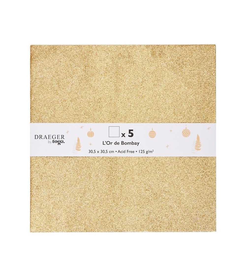 Set de 5 papiers unis or mat. Grammage : 125g/m2. Idéal pour tous les projets de scrapbooking. Fabriqué à la main à base de papier 100% recyclé.