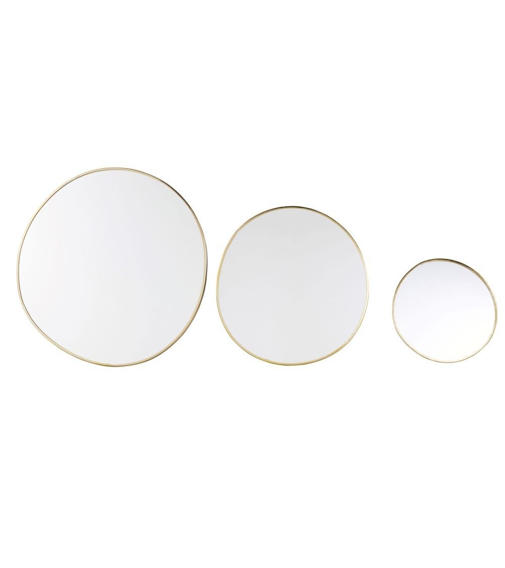 Les trois miroirs ROSSI, finement soulignés de métal doré, ont un style chic irrésistible ! Ce trio de miroirs ovoïdes et de tailles différentes pourra être installé comme vous le désirez : alignés, décalés, séparément chacun deux fera toujours son petit effet !