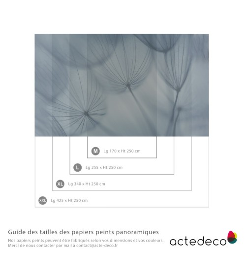 Papier peint contemporain ''Dandelion blue'' aux formes graphiques et naturelles. Papier peint Intissé Lessivable Lisse Mat 160g sans PVC à encoller - Encres Latex sans solvant et sans COV - Fabrication Française - Classement au feu M1. . Intissé à base de fibres cellulosiques et polyester liées par un acrylique sans PVC 160g. Impression encres Latex sans solvant et sans COV.Classement au feu M1. Aspect mat lisse (calandré).Très bon rendu des couleurs. Très bonne stabilité dimensionnelle. Cache les petites imperfections du mur, la préparation du mur est simplifiée. Bonne résistance à la déchirure lors de la pose. Pose facile. Se nettoie à l'éponge avec de l'eau savonneuse. Pose simple.