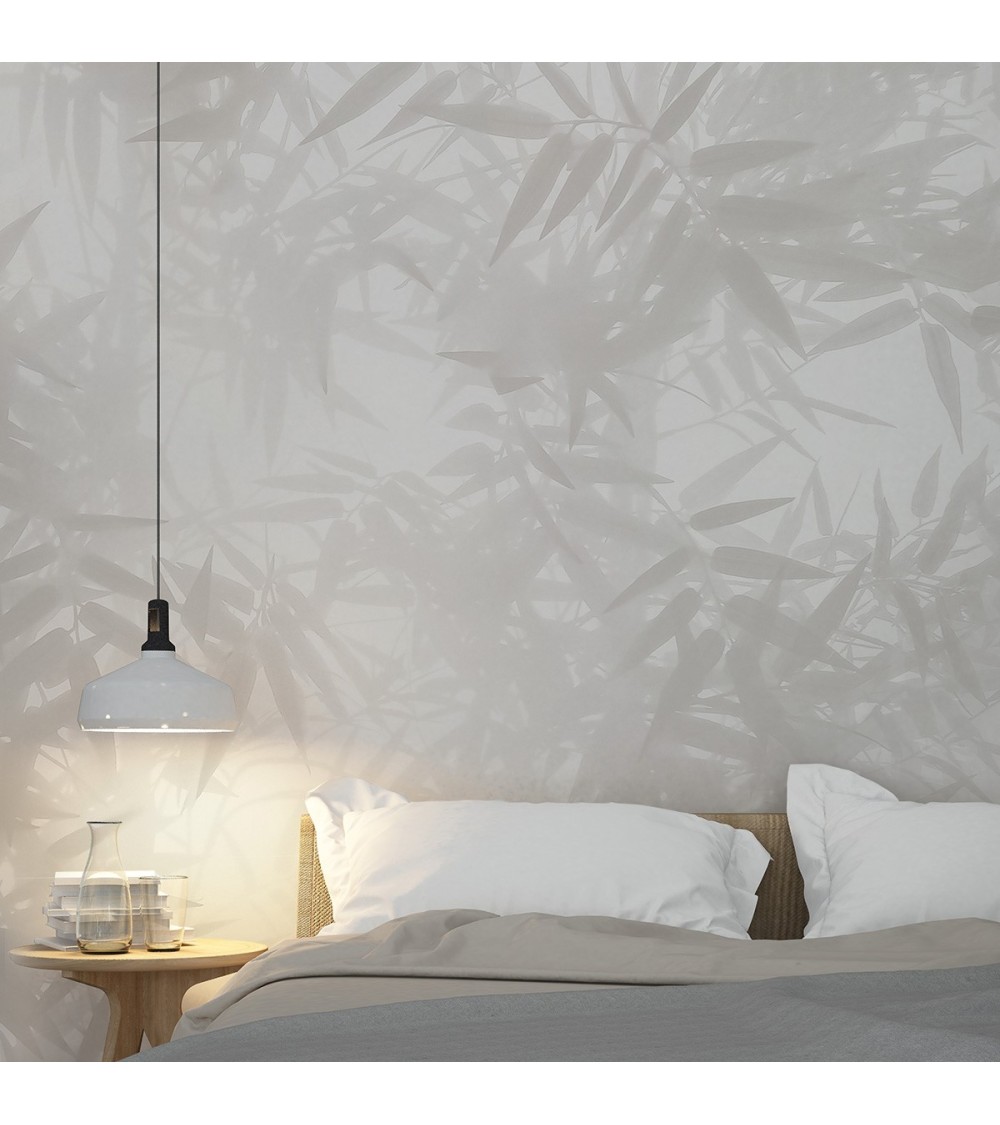 Papier peint panoramique ombres bambous 425 x 250 gris
