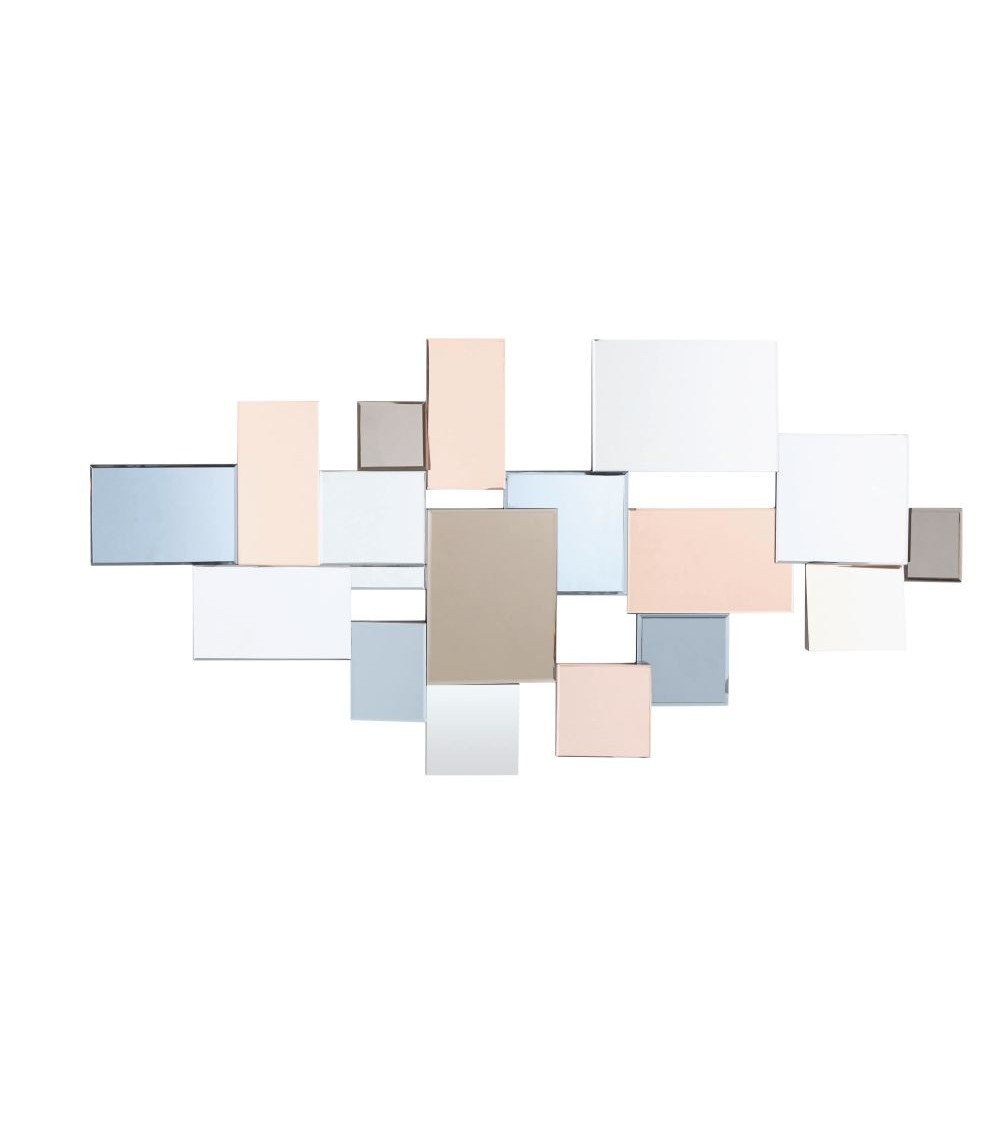 Pour se démarquer du traditionnel miroir rectangulaire, l'assemblage de miroirs en verre fumé et cuivré 140x71 GRAPHIC joue à fond la carte de l'originalité ! Ses petits miroirs rectangulaires et carrées, déclinés en différentes tailles, s'inclinent vers le bas ou vers le haut pour créer un véritable jeu de reflets. Le détail déco ? Ses teintes fumées et cuivrées qui réchaufferont instantanément l'atmosphère... On adore !