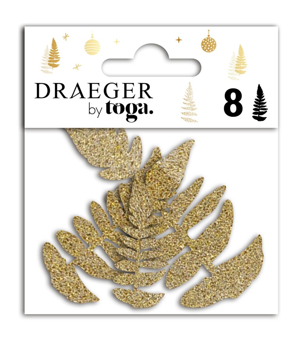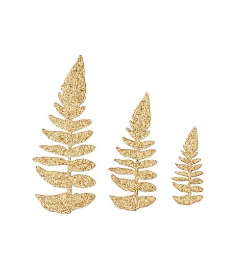 8 sapins découpés de couleur or pailleté. 3 tailles différentes.