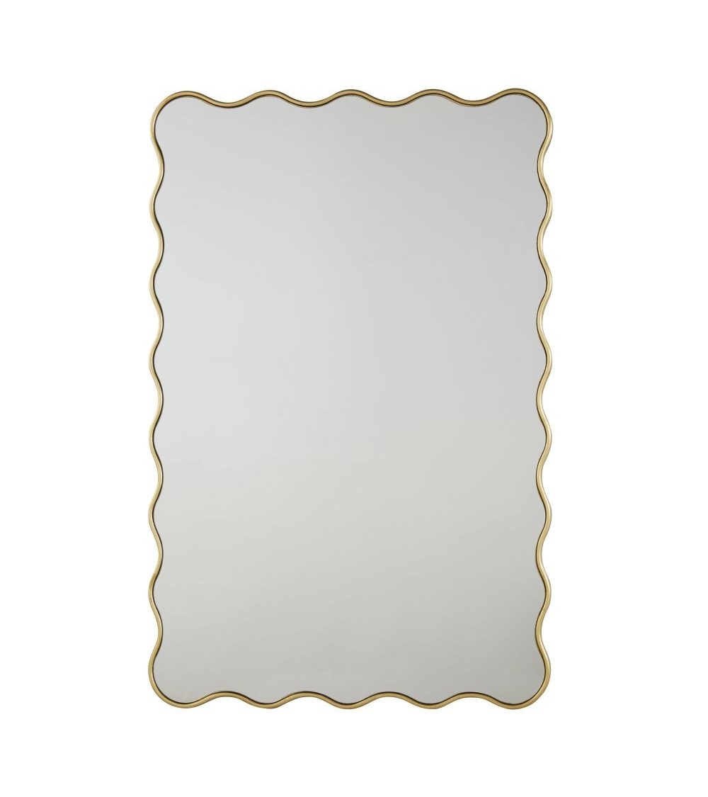 Le miroir CANELA joue la carte de loriginalité avec ses contours ondulés dorés ! Ce grand miroir pourra être positionné verticalement ou horizontalement selon vos envies, et donnera une jolie tonalité exotique à votre déco !