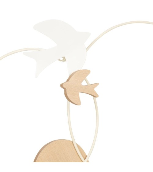 Déco murale oiseaux et cercles marron, gris et blancs 61x29