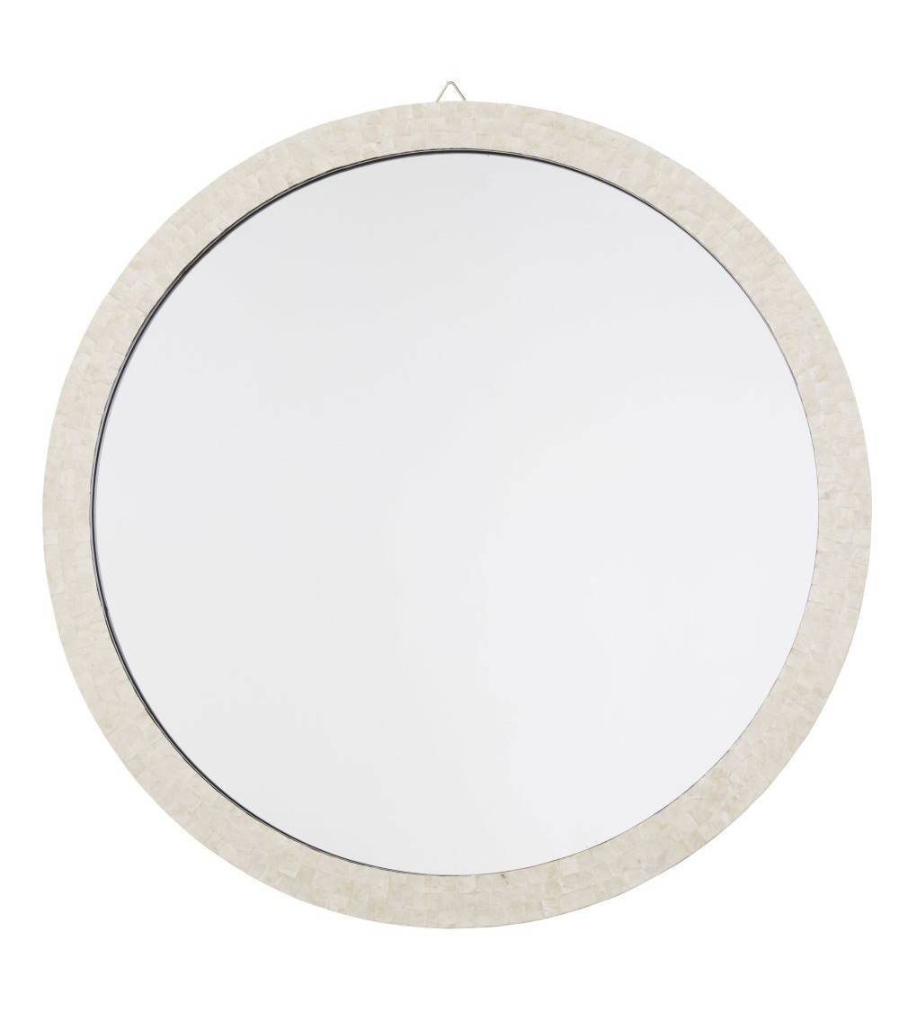 Envie dune escapade au bord de la mer ? Le grand miroir rond HAOUZ va vous faire rêver ! Ce miroir encadré dune mosaïque de nacre de Capiz donnera à votre pièce des airs de maison de vacances Quelle jolie manière de sévader du quotidien !