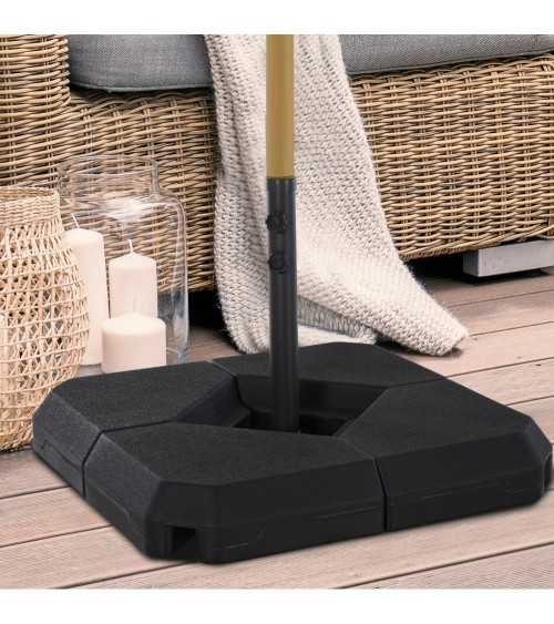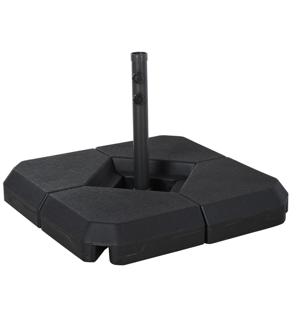 Pas besoin de s'inquiéter des bouffées de vent qui dérangent votre été se détendre à l'ombre avec cette base de poids parapluie 4pcs. Cet ensemble de 4 pièces en acier durable et en HDPE, résistant à tous les éléments météorologiques et facile à entretenir. Il vous suffit de remplir l'eau ou le sable de la base de poids, puis le parapsol peut être tenu en toute sécurité et uniformément dans votre jardin, terrasse ou autres endroits !Caractéristiques :- Fabriqué en plastique HDPE robuste, durable et facile à transporter avant d'être remplies- Base et poteau croisés en acier pour une utilisation robuste et durable- Poteau en acier pour poteau parapluie de 48 mm de diamètre- Chaque base avec une capacité de 15L pour vous permettre de remplir de sable ou d'eau- Nettoyage, transport et stockage faciles- En toute sécurité et uniformément dans votre jardin, terrasse ou autres espaces extérieursSpécifications :- Couleur : noir - Matériaux : acier, HDPE- Dimensions totales : 80L x 80I x 50H cm- Dimension de plaque : 40L x 40I x 12,5H cm- Chaque volume de plaque : 15L- Dimension du poteau : Ø 5,3 x 50H cm- Livraison effectuée en un colis- Réf. : 84D-089