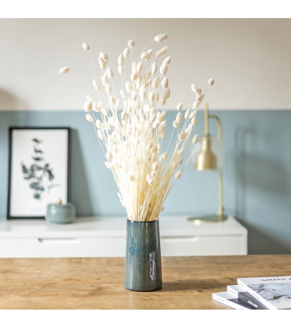 Saviez-vous quen moyenne la production dune rose rejette autant de CO2 quun trajet de 5 km en voiture ?Limitez votre consommation de fleurs fraîches en choisissant de vous confectionner un bouquet de fleurs séchées fait pour durer. Nos bottes de fleurs séchées sont sélectionnées avec soin. Vous pouvez les placer dans un vase sans eau à réception ou décider de confectionner votre propre bouquet en choisissant de marier plusieurs espèces de fleurs séchées. Pour garder vos fleurs séchées le plus longtemps possible, nous vous conseillons de les placer à labri de la lumière directe et de l'humidité. Composition de la botte : Phalaris blanc secPoids : env.150G Longueur : env. 60CM