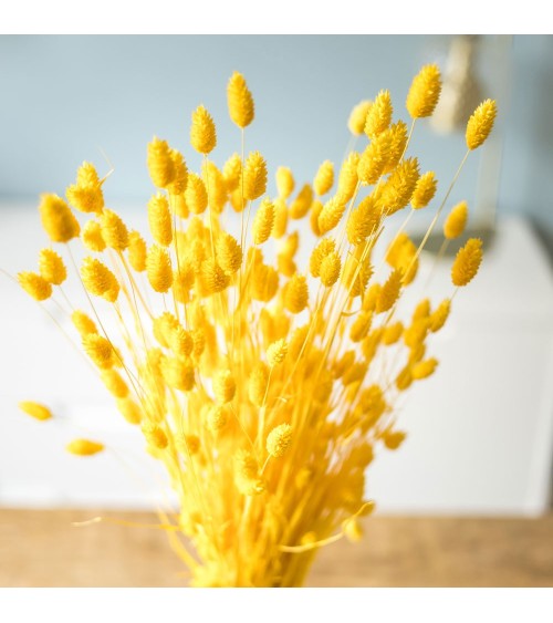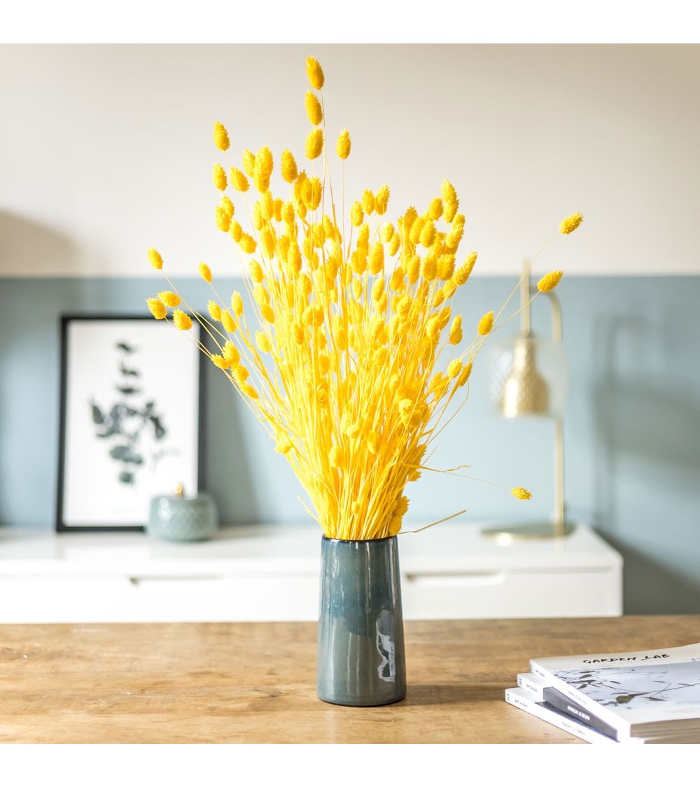 Saviez-vous quen moyenne la production dune rose rejette autant de CO2 quun trajet de 5 km en voiture ?Limitez votre consommation de fleurs fraîches en choisissant de vous confectionner un bouquet de fleurs séchées fait pour durer. Nos bottes de fleurs séchées sont sélectionnées avec soin. Vous pouvez les placer dans un vase sans eau à réception ou décider de confectionner votre propre bouquet en choisissant de marier plusieurs espèces de fleurs séchées. Pour garder vos fleurs séchées le plus longtemps possible, nous vous conseillons de les placer à labri de la lumière directe et de l'humidité. Composition de la botte : Phalaris jaune Poids : env.150GLongueur : env. 60CM