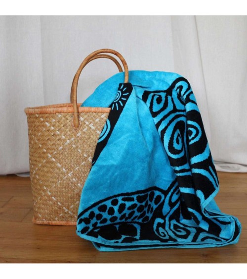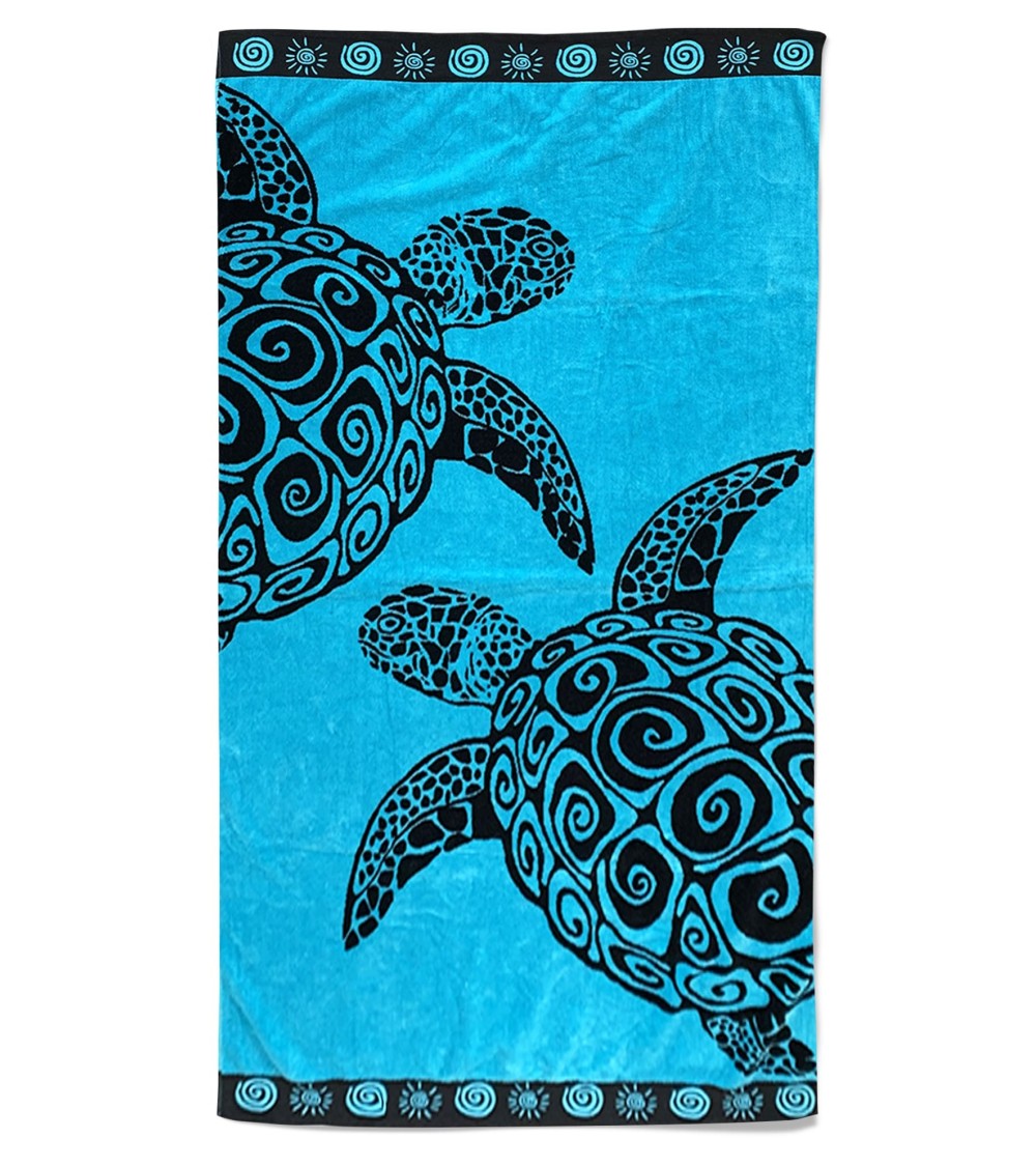 Serviette de plage éponge velours Turquoise turtle 100 x 175