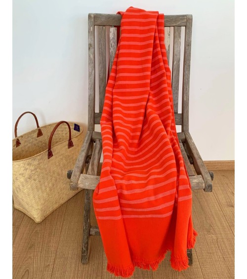 Fouta doublée éponge avec franges alanya orange corail 90x160