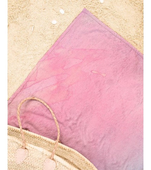 Serviette de plage en éponge-velours en bleu & rose 90x180