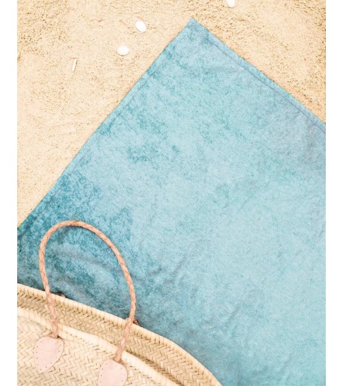 Serviette de plage en éponge-velours en bleu & vert 90x180