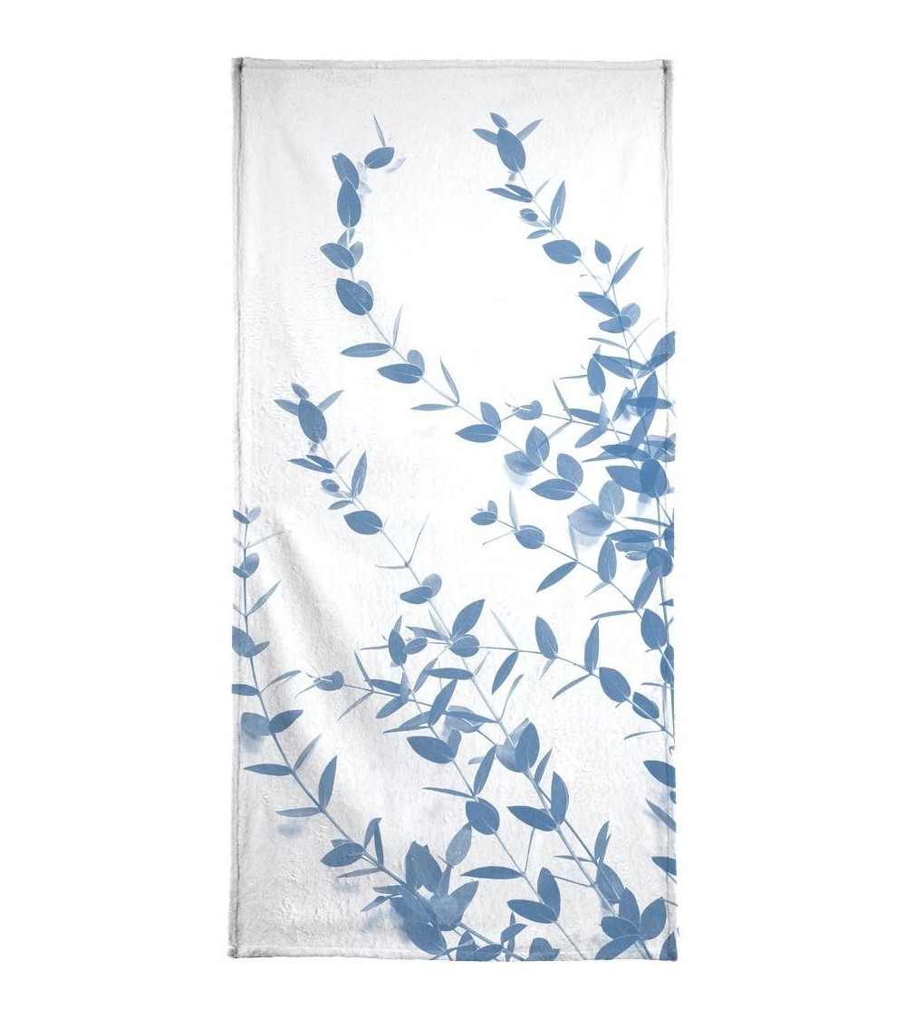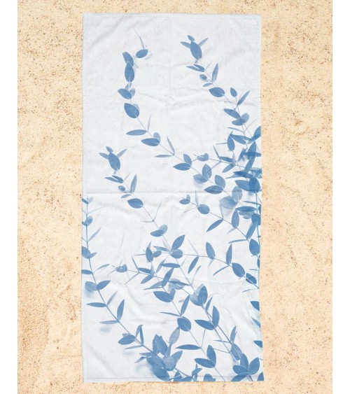 Serviette de plage en éponge-velours en blanc & bleu 90x180