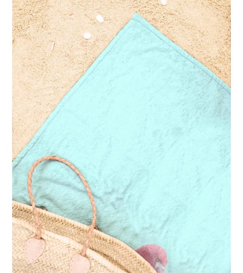 Serviette de plage en éponge-velours en bleu & rose 90x180
