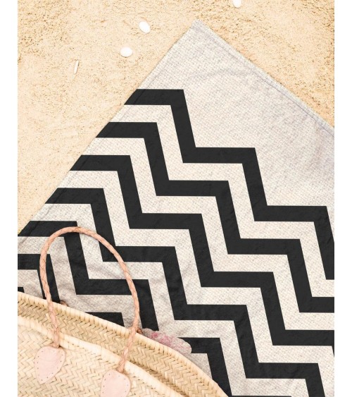 Serviette de plage en éponge-velours en blanc ivoire & noir 90x180