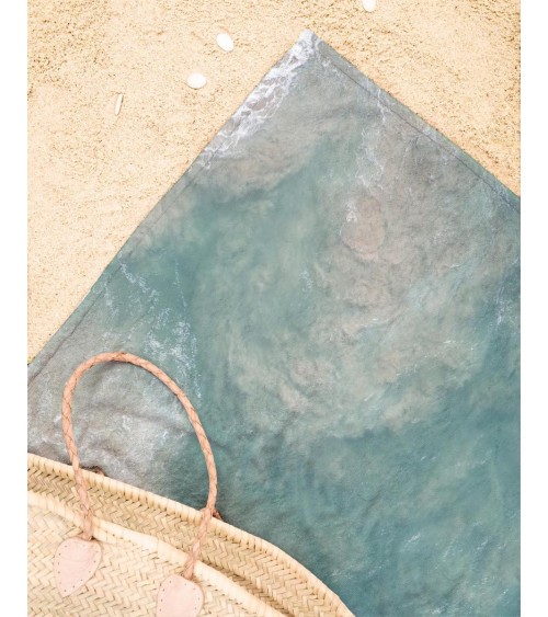 Serviette de plage en éponge-velours en bleu & turquoise 90x180