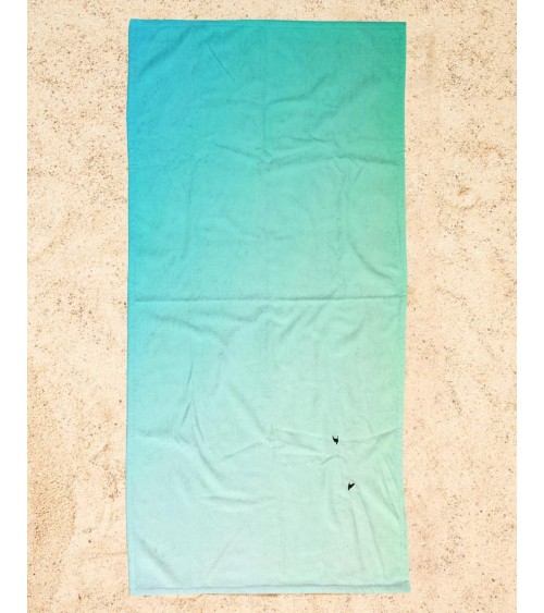 Serviette de plage en éponge-velours en turquoise & vert 90x180