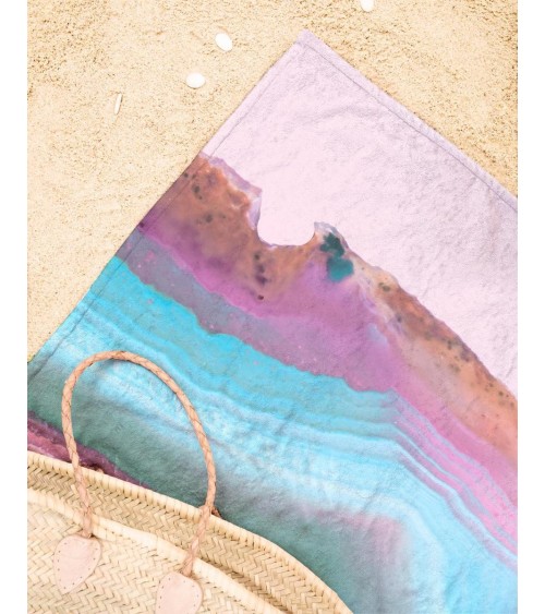 Serviette de plage imprimée sur une face, douce au toucher avec un effet velours. Lautre côté est en tissu éponge blanc. La serviette porte une étiquette JUNIQE permettant de laccrocher facilement.
