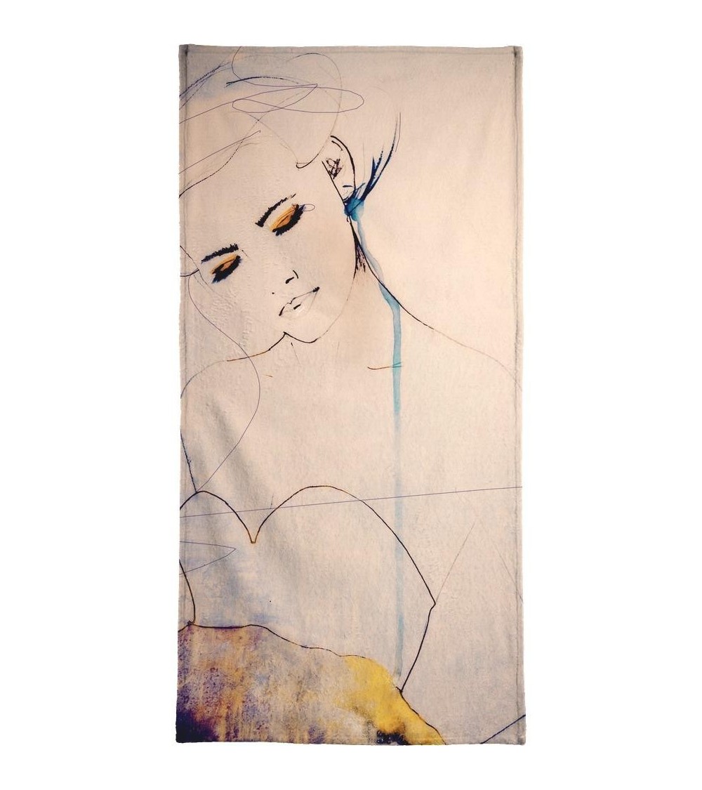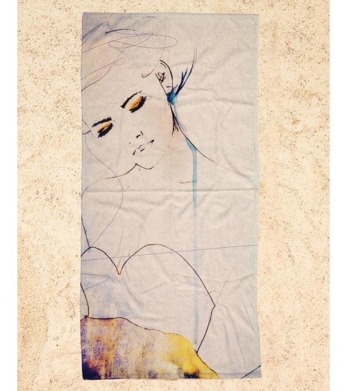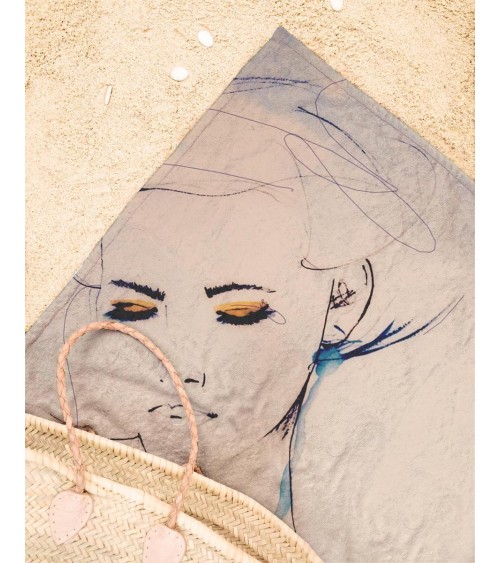 Serviette de plage imprimée sur une face, douce au toucher avec un effet velours. Lautre côté est en tissu éponge blanc. La serviette porte une étiquette JUNIQE permettant de laccrocher facilement.