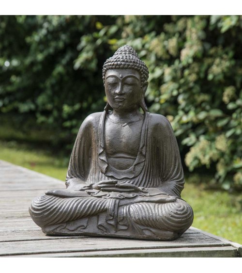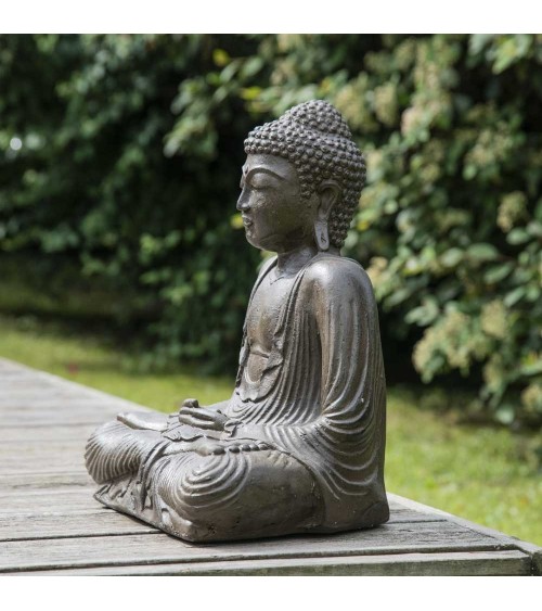 Ajoutez cette statue de jardin à votre décoration extérieure. Cette ravissante statue de Bouddha couleur patiné brun antique est idéale pour créer un jardin zen et instaurer une atmosphère reposante. En intérieur comme en extérieur cet objet déco apporte une touche exotique dans votre quotidien. En position méditation, ce Bouddha assis transforme votre espace en un lieu de bien-être. Existe également en noir et patiné doré. Retrouvez toutes nos statues en fibro-ciment ici. Dimensions Longueur : 34 cm Largeur : 22 cm Hauteur : 42 cm Détails La résine utilisée pour la fabrication des objets de décoration est un amalgame de fibre de verre, de résine, de ciment et de durcisseur, rendant les objets particulièrement durs et robustes. Afin d'optimiser la longévité du produit, nous vous conseillons l'application d'un hydrofuge.