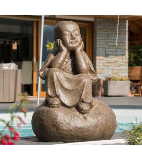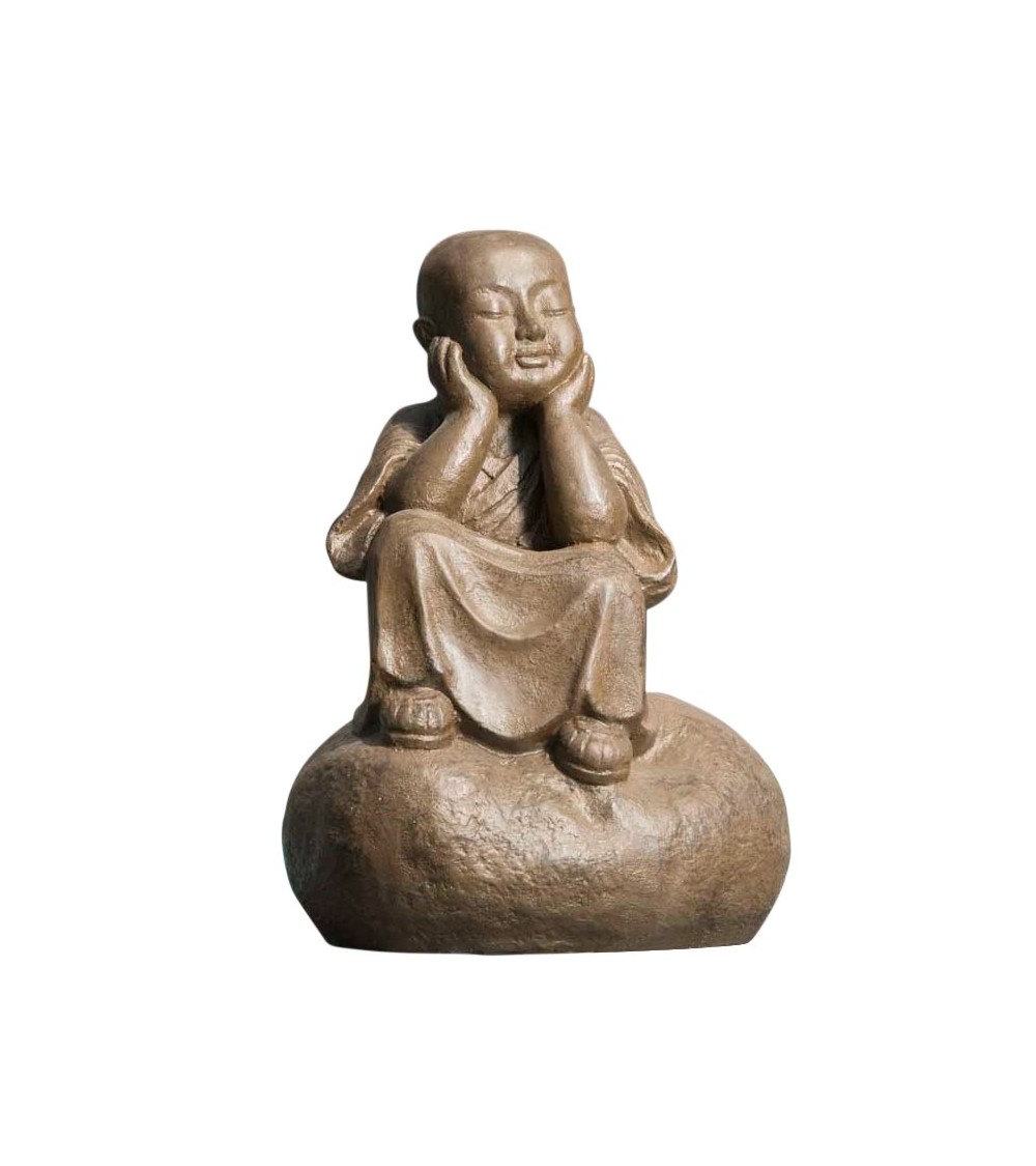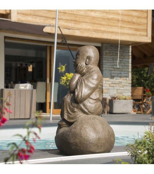 Choisissez la statue moine Shaolin pensif 80 cm pour la décoration zen de votre intérieur ou de votre extérieur. Cette statue de jardin offre une ambiance relaxante et reposante. Autour d'un bassin ou sur votre terrasse, cet objet déco permet de créer un lieu accueillant. De couleur brun antique, ce moine Shaolin, qui signifie ''temple de la foret du mont Shaoshi'' transforme votre espace naturel et vous permet de vous évader le temps d'un instant. Retrouvez toutes nos statues en fibro-ciment ici. Dimensions Longueur : 55 cm Largeur : 45 cm Hauteur : 80 cm Détails La résine utilisée pour la fabrication des objets de décoration est un amalgame de fibre de verre, de résine, de ciment et de durcisseur, rendant les objets particulièrement durs et robustes. Afin d'optimiser la longévité du produit, nous vous conseillons l'application d'un hydrofuge.