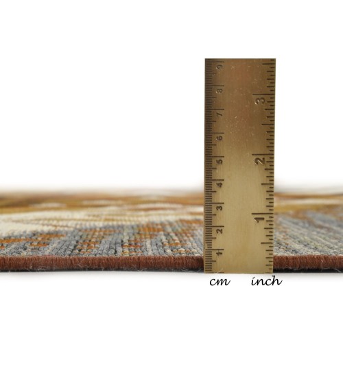 Ce beau tapis tissé se montre dans des motifs abstraits asymétriques. Les diamants et les dentelures sont disposés de façon sauvage et libre et se combinent en différentes tailles pour former un ensemble complexe et inhabituel. Le charisme de ce look ethnique incomparable combine les modèles traditionnels de différentes cultures. Le spectre de couleurs chaudes et intenses va du terreux au rougeâtre et donne vie à tous les sols. Fabriqué à partir de fibres de polypropylène et de polyester de haute qualité, dont les substances nocives ont été testées, ce tissu à tissage plat court peut résister aux plus grandes contraintes et vous ravira pendant des années grâce à son aspect impeccable. Les fibres synthétiques très durables utilisées dans ce produit offrent également d'autres excellentes caractéristiques de performance telles que la résistance à l'humidité et aux rayons UV. Cette combinaison de matériaux et de propriétés d'utilisation fait de ce tapis un produit polyvalent unique dans votre espace de vie intérieur et extérieur. La plupart des taches peuvent être facilement enlevées avec un chiffon humide et pour les taches tenaces, vous pouvez simplement utiliser une mousse de tapis standard. Le matériau traité sèche à nouveau rapidement lorsqu'il est humide, sans se décolorer ni même se tacher, ce qui est bien sûr synonyme de la solidité des couleurs de ce produit.Ce tapis peut également être posé sans problème dans les pièces équipées d'un chauffage au sol. Ce passe-partout exotique à l'allure africaine transforme votre maison en un lieu de rencontre de différents modèles culturels et traditionnels et transmet une pure joie de vivre. Le tapis parfait pour l'intérieur et l'extérieur !Veuillez noter que les couleurs de votre écran peuvent être différentes des couleurs d'origine. Nous recommandons une sous-couche antidérapante.Méthode de fabrication: tissé à la machineMatériel de pile: 76% Polypropylen / 24% PolyesterPoids: 960gHauteur: 5.00mmOrigine: Egypt