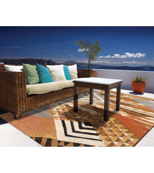 Ce beau tapis tissé se montre dans des motifs abstraits asymétriques. Les diamants et les dentelures sont disposés de façon sauvage et libre et se combinent en différentes tailles pour former un ensemble complexe et inhabituel. Le charisme de ce look ethnique incomparable combine les modèles traditionnels de différentes cultures. Le spectre de couleurs chaudes et intenses va du terreux au rougeâtre et donne vie à tous les sols. Fabriqué à partir de fibres de polypropylène et de polyester de haute qualité, dont les substances nocives ont été testées, ce tissu à tissage plat court peut résister aux plus grandes contraintes et vous ravira pendant des années grâce à son aspect impeccable. Les fibres synthétiques très durables utilisées dans ce produit offrent également d'autres excellentes caractéristiques de performance telles que la résistance à l'humidité et aux rayons UV. Cette combinaison de matériaux et de propriétés d'utilisation fait de ce tapis un produit polyvalent unique dans votre espace de vie intérieur et extérieur. La plupart des taches peuvent être facilement enlevées avec un chiffon humide et pour les taches tenaces, vous pouvez simplement utiliser une mousse de tapis standard. Le matériau traité sèche à nouveau rapidement lorsqu'il est humide, sans se décolorer ni même se tacher, ce qui est bien sûr synonyme de la solidité des couleurs de ce produit.Ce tapis peut également être posé sans problème dans les pièces équipées d'un chauffage au sol. Ce passe-partout exotique à l'allure africaine transforme votre maison en un lieu de rencontre de différents modèles culturels et traditionnels et transmet une pure joie de vivre. Le tapis parfait pour l'intérieur et l'extérieur !Veuillez noter que les couleurs de votre écran peuvent être différentes des couleurs d'origine. Nous recommandons une sous-couche antidérapante.Méthode de fabrication: tissé à la machineMatériel de pile: 76% Polypropylen / 24% PolyesterPoids: 960gHauteur: 5.00mmOrigine: Egypt