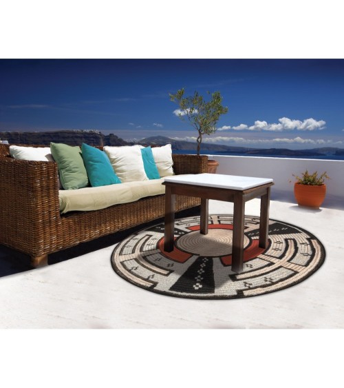 Tapis d'extérieur tissé plat - beige multicolore D60 cm