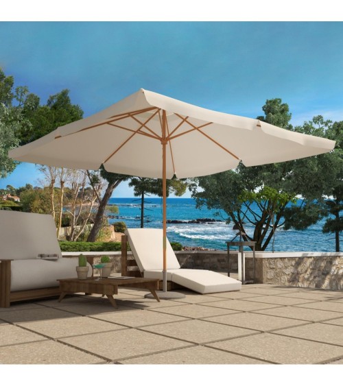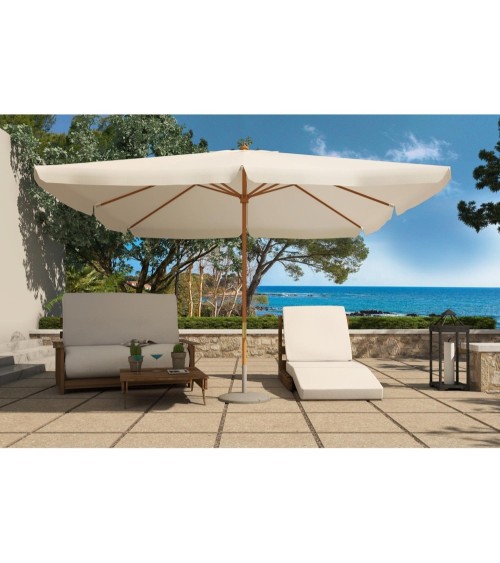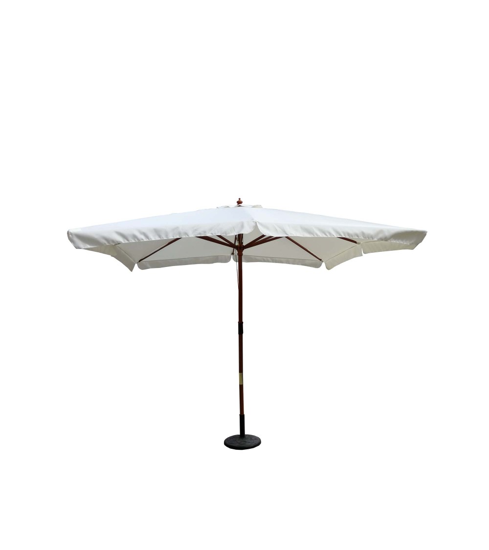Aménagez votre espace extérieur avec le parasol bois Palawan 3x3m sur votre balcon, près de votre piscine ou encore dans votre jardin. Fabriqué en bois et résistant à leau grâce à sa matière polyester, ce parasol bois rectangle dispose dun système de poulie pour une ouverture et une fermeture facile.Parfait pour ombrager un salon de jardin ou votre transat, ce parasol vous assure une protection optimale pour vous détendre en famille ou entre amis.La photo est une suggestion de présentation. Le pied n'est pas livré avec le parasol.Caractéristiques techniques :Type de parasol : rectangleCouleur structure : boisCouleur toile : écruMatière : polyester imperméableStructure : boisDensité toile : 180 g/m2Forme : rectangulaireDouble système poulie : OuiNombre de baleine : 8Résistant à leauEntretien :Les mains protégées par des gants de ménage, nettoyez le parasol avec une brosse bien imbibée d'une solution composée d'une tasse à café de cristaux de soude et d'un litre d'eau chaude. Rincez au jet d'eau ou à l'éponge mouillée d'eau claire. Laissez sécher ouvert.Dimensions :Dimensions toile : 3 x 3 MDiamètre du mât : 48 mmDiamètre des baleines : 17 x 22 mmPoids : 28 kgConditionnement :Produit livré dans 1 cartons.Montage facile, notice incluse.Colis 1 : 15 x 205 x 15 cm / 28,6 kgs.* Livraison pas de porte offerte* Garantie 2 ans
