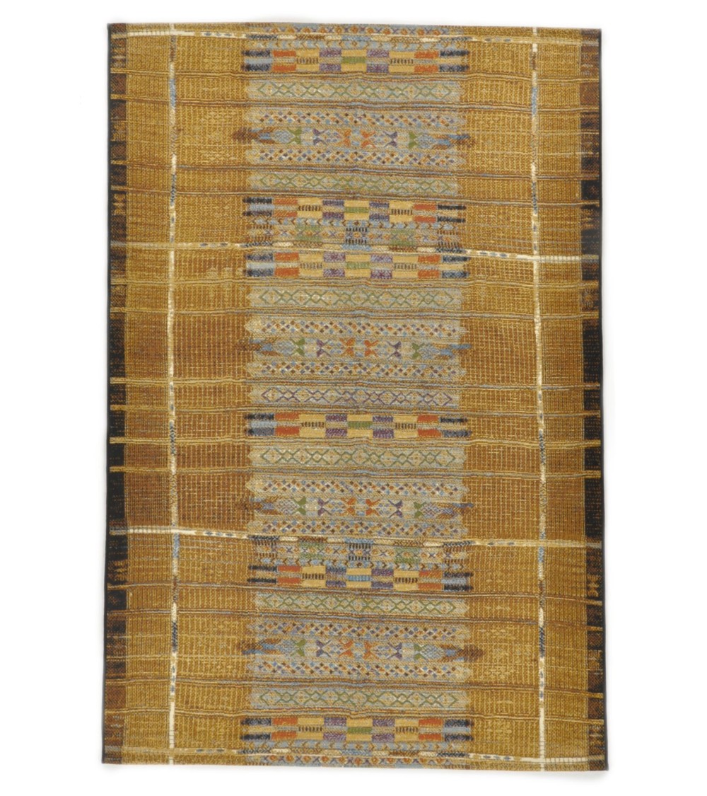 Ce beau tapis tissé se montre dans des motifs abstraits asymétriques. Les diamants et les dentelures sont disposés de façon sauvage et libre et se combinent en différentes tailles pour former un ensemble complexe et inhabituel. Le charisme de ce look ethnique incomparable combine les modèles traditionnels de différentes cultures. Le spectre de couleurs chaudes et intenses va du terreux au rougeâtre et donne vie à tous les sols. Fabriqué à partir de fibres de polypropylène et de polyester de haute qualité, dont les substances nocives ont été testées, ce tissu à tissage plat court peut résister aux plus grandes contraintes et vous ravira pendant des années grâce à son aspect impeccable. Les fibres synthétiques très durables utilisées dans ce produit offrent également d'autres excellentes caractéristiques de performance telles que la résistance à l'humidité et aux rayons UV. Cette combinaison de matériaux et de propriétés d'utilisation fait de ce tapis un produit polyvalent unique dans votre espace de vie intérieur et extérieur. La plupart des taches peuvent être facilement enlevées avec un chiffon humide et pour les taches tenaces, vous pouvez simplement utiliser une mousse de tapis standard. Le matériau traité sèche à nouveau rapidement lorsqu'il est humide, sans se décolorer ni même se tacher, ce qui est bien sûr synonyme de la solidité des couleurs de ce produit.Ce tapis peut également être posé sans problème dans les pièces équipées d'un chauffage au sol. Ce passe-partout exotique à l'allure africaine transforme votre maison en un lieu de rencontre de différents modèles culturels et traditionnels et transmet une pure joie de vivre. Le tapis parfait pour l'intérieur et l'extérieur !Veuillez noter que les couleurs de votre écran peuvent être différentes des couleurs d'origine. Nous recommandons une sous-couche antidérapante.Méthode de fabrication: tissé à la machineMatériel de pile: 76% Polypropylen / 24% PolyesterPoids: 960gHauteur: 5.00mmOrigine: Egypt