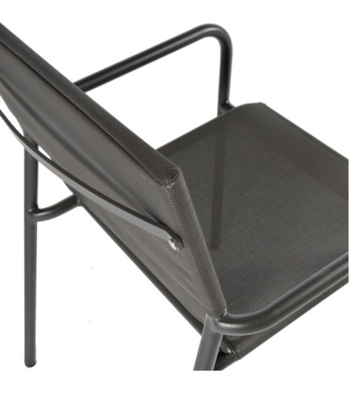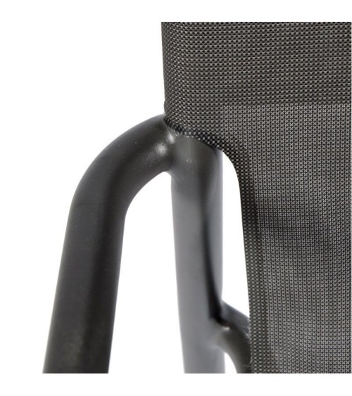 Fauteuil extérieur en aluminium et textilène. Vous ladopterez pour sa sobriété et son confort. Dimensions : L60 x l60 x H84 cm Matières : structure en aluminium, assise et dossier en textilène Fauteuil empilable Disponible en 2 couleurs : gris et noir. Fauteuil empilable : pratique et facile à ranger. Garantie : 2 ans.