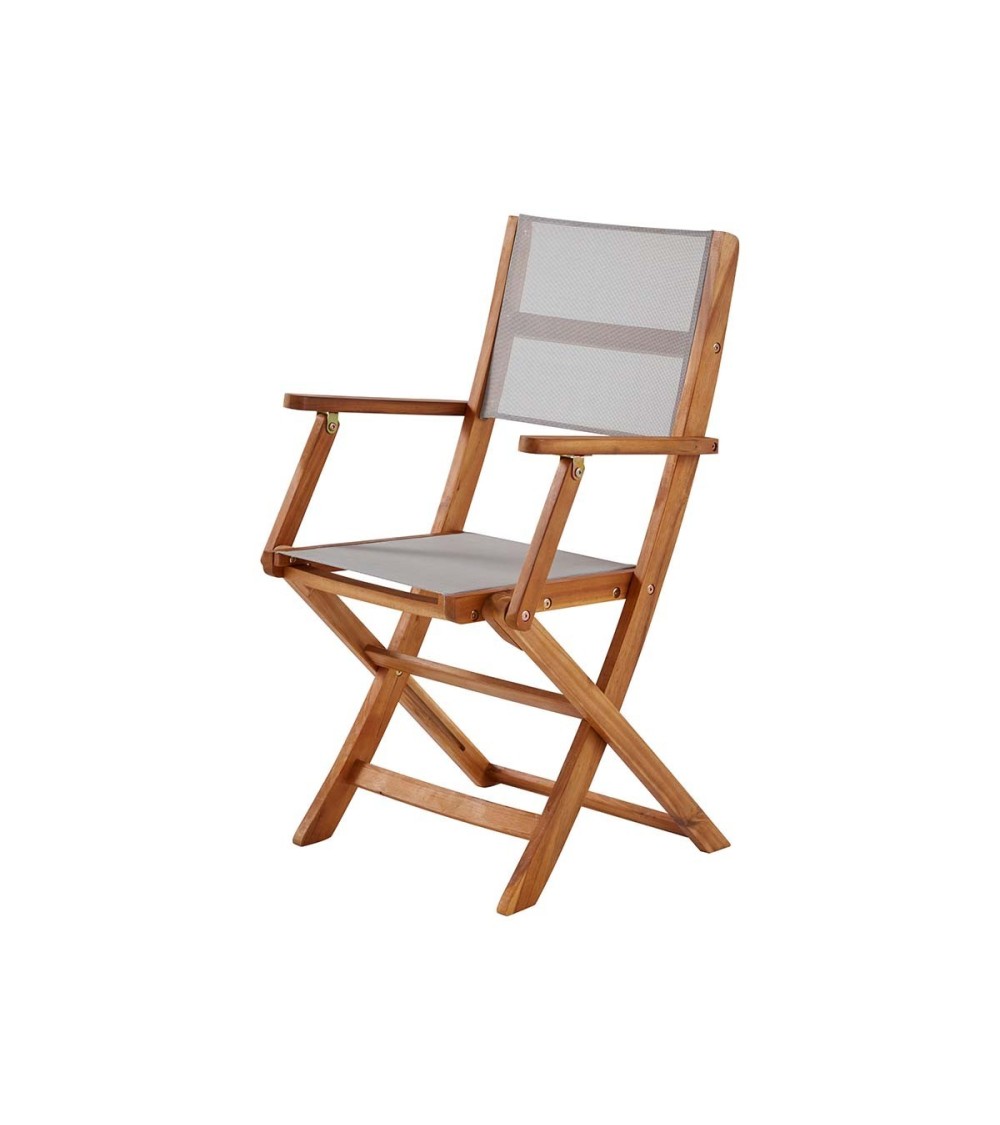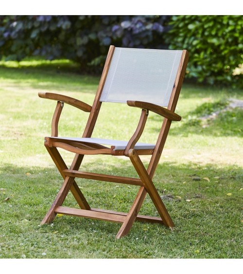 Fauteuil de jardin pliant en acacia massif et textilène gris