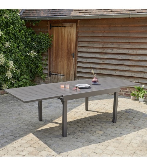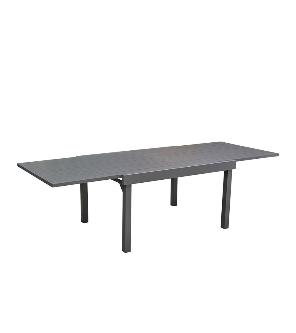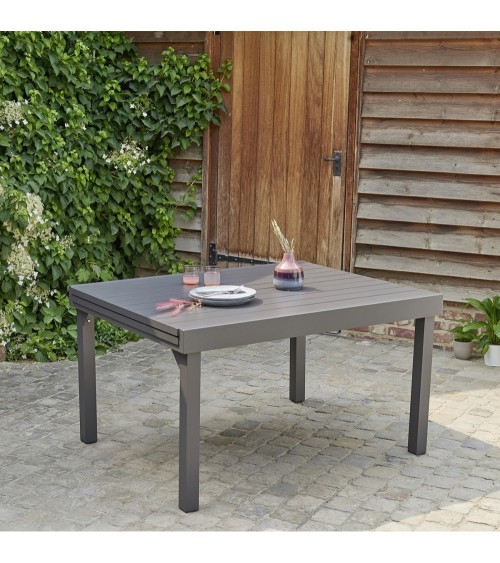 Disposant de rallonges innovantes qui vous permettra d'accueillir 10 personnes, cette table de jardin extensible en aluminium gris anthracite ne vous demandera aucun effort pour l'agrandir. Caractéristiques : Matière : aluminium - Couleur : gris anthracite - Hauteur : 75 cm - Longueur : 135/270 cm - Profondeur : 105 cm - Poids : 36 kg - Garantie : 2 ans - Montage : à monter.