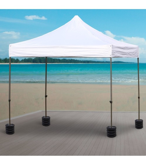 Ce lot de 4 poids de lestage rond maximisera la stabilité et sécurité de votre tonnelle, barnum, tente, chapiteau, etc... Par condition ventée, vous pourrez attacher un poids à chaque pied de votre tonnelle.Caractéristiques :- Lot de 4 poids de lestage pour tonnelle, tente, parasol, pavillon, chapiteau, etc... gage de stabilité et de securité même les jours de vent- Convient aux tubes de pied de 2 cm jusqu'à 3,5 cm de diamètre- Lestage / garnissage à effectuer à base de sable ou ciment pour une stabilité optimale (contenant en HDPE noir)- Compact : facile et pratique à déplacer et rangerSpécifications :- Couleur : noir- Matériau principal : HDPE- Diamètre : 25 cm- Hauteur : 6 cm- Dimensions encoche : 12L x 4l cm- Convient aux tubes de 2 cm jusqu'à 3,5 cm de diamètre- Poids rempli (chacun) : 5 Kg (lestage ciment), 4 Kg (lestage sable)- Livraison effectuée en un colis- Réf. : 84C-085
