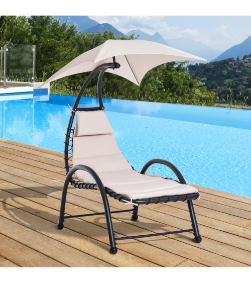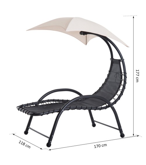 Description : Ce magnifique bain de soleil transat suspendu design contemporain s'intègrera parfaitement dans votre jardin ou sur votre terrasse. Son design mêlant élégance, sobriété et modernité sera le nouvel atout charme et repos de votre extérieur ! Caractéristiques : - Bain de soleil design contemporain avec lignes courbes très élégantes- Bain de soleil transat suspendu complet livré avec support sur pied, matelas et même pare-soleil amovible !- Matelas et têtière grand confort 5 cm d'épaisseur avec revêtement polyester haute densité 160 g/m² coloris beige- Châssis tubulaire robuste en métal époxy anticorrosion et sommier textilène ficelé par élastique : souplesse pour votre confort optimal d'utilisation- Accoudoirs, pieds antidérapants, cordons d'attache du matelas, etc... : équipement complet, finitions soignées- Facile à installer grâce à sa notice d'assemblage illustrée Spécifications : - Matériaux principaux : acier époxy anticorrosion, polyester, textilène, mousse de rembourrage- Couleurs principales : beige, noir- Dim. totales : 1,70L x 1,18l x 1,77H m- Diamètre du toit pare-soleil : 1,17 m- Dia. châssis tubulaire : 4,8 et 2,5 cm- Dia. tubulaire entretoises : 1 cm- Largeur max. d'assise : 77 cm- Diamètre châssis tubulaire : 42, 60 et 25 mm- Charge maximale recommandée : 150 Kg- Livraison effectuée en un seul colis- Réf. : 84B-180BN