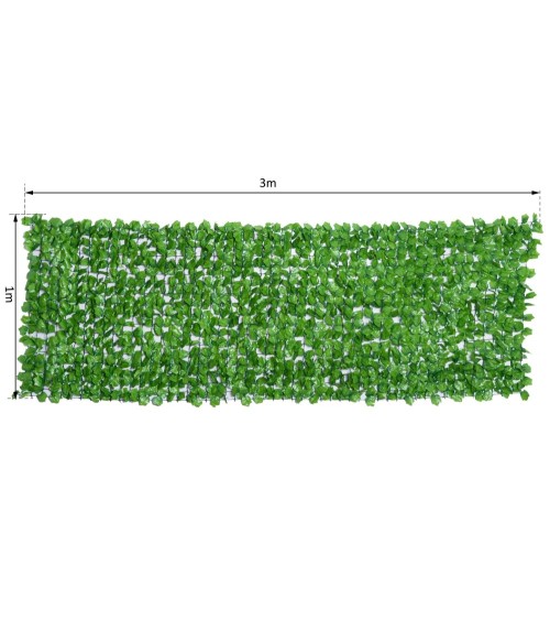 Cette splendide haie artificielle d'Outsunny est la solution idéale pour changer rapidement le décor de votre paysage. Elle ressemble à de vraies plantes et permet de vous offrir une intimité optimale dans votre jardin, balcon, piscine et terrasse. Très facile à installer et à entretenir, cette haie d'érable vous garantit un décor vert tout au long de l'année ! N'attendez plus, ajoutez du charme et de l'élégance à votre espace extérieur.Caractéristiques :- Haie d'érable au joli feuillage bien dessiné et aux teintes vertes très réalistes- Idéal pour agrémenter le paysage de votre jardin, balcon, terrasse ou piscine- Clôture de haute qualité, résistante aux UV, à la poussière et au vieillissement- Plantes vertes de couleurs vives pour instaurer une ambiance bucolique reposante- Peut servir de brise-vue- Très facile à installer et à laverSpécifications :- Couleur : vert- Matériaux principaux : PE et tissu- Dimensions totales : 3L x 1H m- Dimensions feuilles : env. 7L x 6l cm- Dimensions maillage arrière : 6L x 6l cm- Livraison effectuée dans un colis- Réf. : 844-202