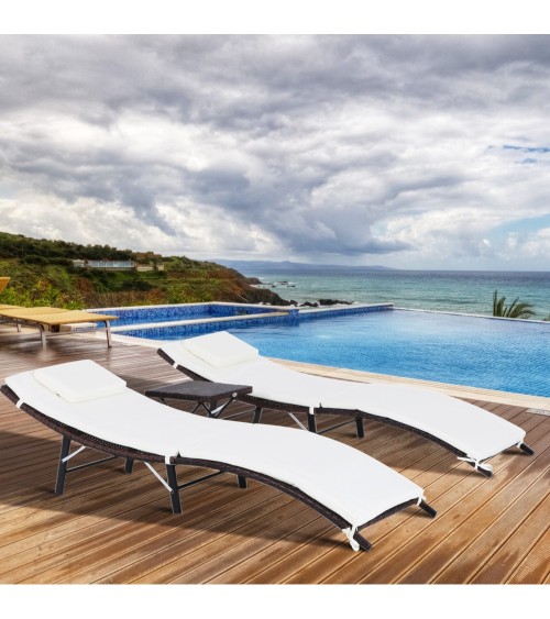 Lot de 2 bains de soleil pliables matelas table basse résine chocolat