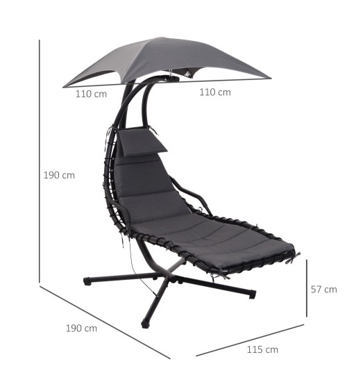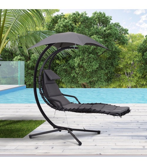 Ce magnifique bain de soleil transat suspendu design contemporain s'integrera parfaitement dans votre jardin ou sur votre terrasse. Son design mélant élégance, sobriété et modernité sera un atout charme et repos supplémentaire de votre extérieur !Caractéristiques :- Bain de soleil transat complet avec support sur pied, matelas et même pare-soleil amovible- Design contemporain sobre et élégant- Structure en tubes d'acier recouvert de poudre epoxy inoxydable, robustesse et pérennité d'utilisation au rendez-vous- Sommier en polyester souple noué au châssis par un réseau de cordons pour un confort inégalable- Accoudoirs avec revêtement mousse : position assise ou allongée très agréable- Matelas et oreiller 3,5 cm d'épaisseur polyester 180g/m² fournis- Chassis grande solidité, double cordons stabilisateurs et pieds antidérapants pour une sécurité d'utilisation optimale- Chaine et ressort de suspension acier fournis- Montage et entretien facileSpécifications :- Couleurs : noir et gris foncé- Matériaux principaux : acier, polyester, mousse- Dimensions totales : 194L x 117l x 192H cm- Dimensions pare-soleil : 117L x 119l cm- Hauteur d'assise : environ 52 cm- Epaisseur matelas : 3,5 cm- Diamètres de tubes : 60, 42 et 25 mm- Charge max. recommandée : 100 Kg- Réf. : 84A-042CG
