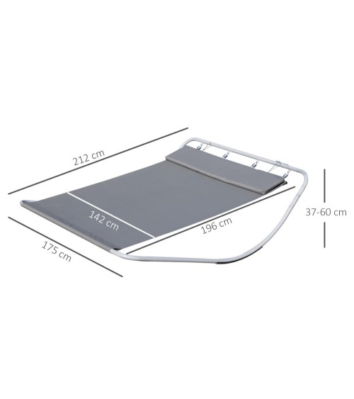 Ce transat de deux personnes en polyester imperméable est confortable et robuste. Il vous accueillera pour des séances de repos ou des moments de détente dans le jardin, sur la terrasse, au bord de la piscine, etc. . . . Quoi de mieux que de se laisser balancer tranquillement en profitant du soleil !Caractéristiques :- Design moderne et intemporel- Lit et oreiller en polyester respirant et anti-moisissure- Balancez- vous selon vos envies, très agréable et apaisant- Armature arrondie en tubes d'acier robustes avec enduit de poudre époxy anticorrosion- Montage et entretien facile Spécifications :- Couleur : gris- Dim totales : env. 212L x 175l x 39/60H cm- Surface de couchage : env. 196L x 142l cm- Charge max. recommandée : 250 Kg- Réf. : 01-0309