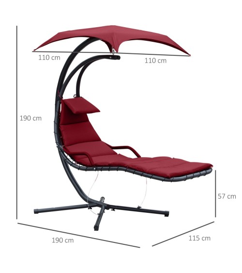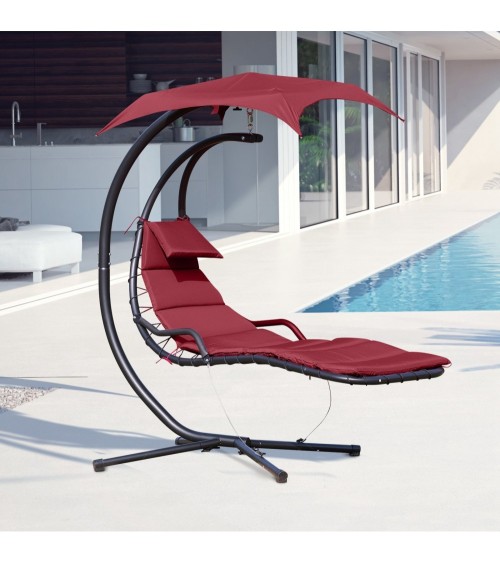 Ce magnifique bain de soleil transat suspendu design contemporain s'integrera parfaitement dans votre jardin ou sur votre terrasse. Son design mélant élégance, sobriété et modernité sera un atout charme et repos supplémentaire de votre extérieur !Caractéristiques :- Bain de soleil transat complet avec support sur pied, matelas et même pare-soleil amovible- Design contemporain sobre et élégant- Structure en tubes d'acier recouvert de poudre epoxy inoxydable, robustesse et pérennité d'utilisation au rendez-vous- Sommier en polyester souple noué au châssis par un réseau de cordons pour un confort inégalable- Accoudoirs avec revêtement mousse : position assise ou allongée très agréable- Matelas et oreiller rouge 3,5 cm d'épaisseur polyester 180g/m² fournis- Chassis grande solidité, double cordons stabilisateurs et pieds antidérapants pour une sécurité d'utilisation optimale- Chaine et ressort de suspension acier fournis- Montage et entretien facileSpécifications :- Couleurs : noir et rouge- Matériaux principaux : acier, polyester, mousse- Dimensions totales : 194L x 117l x 192H cm- Dimensions pare-soleil : 117L x 119l cm- Hauteur d'assise : environ 52 cm- Epaisseur matelas : 3,5 cm- Diamètres de tubes : 60, 42 et 25 mm- Charge max. recommandée : 100 Kg- Réf. : 84A-042WR