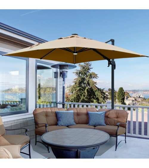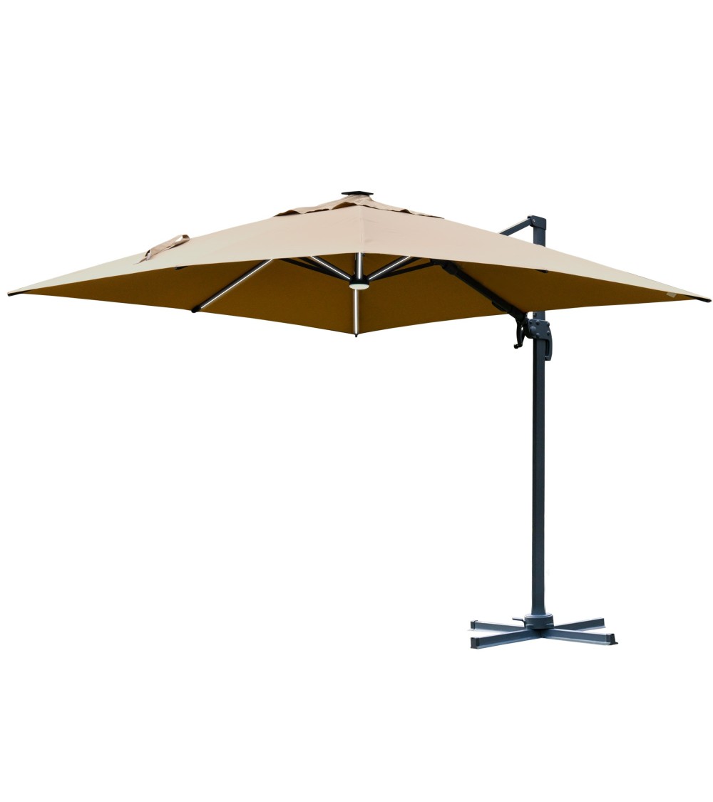 Parasol déporté LED carré inclinable pivotant 360° beige